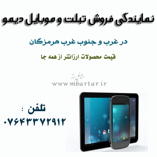نمایندگی دیمو در غرب و جنوب غرب هرمزگان. عرضه کننده انواع تبلت و موبایل دیمو بایکسال گارانتی و قیمت مناسب،ارسال رایگان،نصب برنامه و بازی رایگان به درخواست مشتری،خدمات پس از فروش و پشتیبانی مستمر ، قیمت محصولات ارزانتر از همه جا.