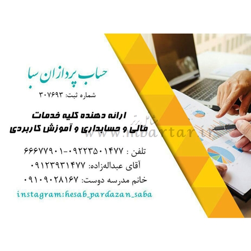 ارائه انواع خدمات حسابداری ، مالی ، مشاوره مالیاتی و بیمه ، رد و تنظیم اظهارنامه مالیاتی ، اعزام پرسنل حسابداری برای حسابداری در محل ، خدمات حسابرسی ، تهیه دفاتر حساب ، تهیه صورتحساب سالیانه و ...