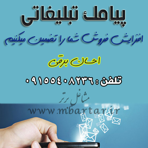در روش تبلیغات پیامکی در کمترین زمان و با ارزانترین قیمت تبلیغ محصول خود را به همگان برسانید. افزایش فروش شما را تضمین میکنیم. با مدیریت: احسان برقی